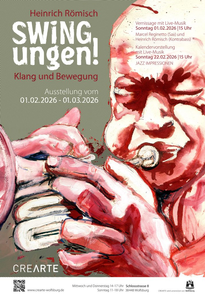 „SWINGungen!“ ist der Name der Ausstellung mit Bildern von Heinrich Römisch, die zurzeit im Schloss Wolfsburg in den Räumen von CREARTE läuft.